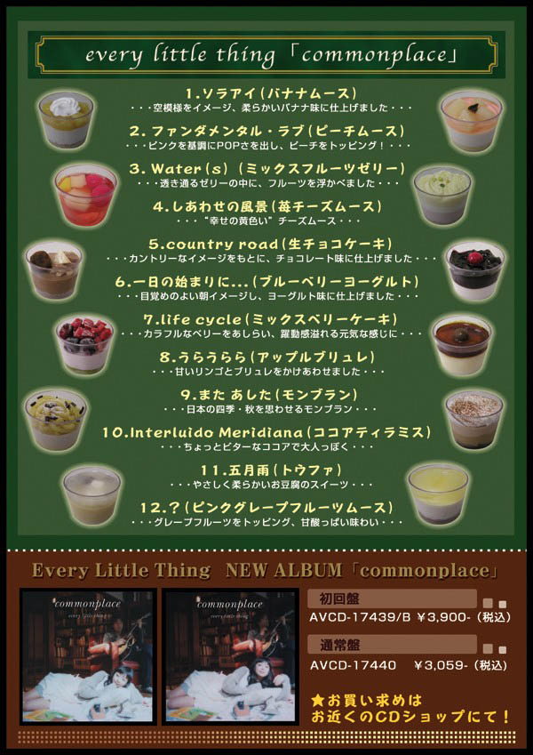 インターネット通販で5000セットを販売 三越での展開はアクシヴが新規事業部というマーチャンダイジングを行う部署を持っており、流通・小売との接点を持っていることから、協力を仰ぎ実現したそうだ。1月に三越にデパチカにELTの店を出してみないかと提案を持ち込み、ほとんど立ち話のような形で即断即決となった。万事慎重な大手流通では異例であり、それだけ企画がユニークでインパクトがあったのだろう。 アクシヴはエイベックスのグループ会社で、所属アーチストも浜崎あゆみさん、BoAさんなど売れっ子を多く抱えている。そうした信用力も背景にあったかもしれない。 生産はコンビニにも商品を卸している、中堅菓子メーカーに委託し、メーカーのシェフが、1つ1つの曲のイメージを膨らませて商品に落とし込んだ。たとえばアップテンポの曲なら赤い色をポイントに使うなどのいろんなアイディアが込められている。 たとえば、「ソラアイ」という曲では空模様をイメージしたやわらかいバナナ味のバナナムース、「ファンダメンタル・ラブ」ではピンクを基調にPOPさを出しピーチをトッピングしたピーチムース、「一日の始まりに…」では目覚めのよい朝をイメージしたブルーベリーヨーグルト、「また あした」では日本の四季・秋を思わせるモンブラン、などといった展開になっている。