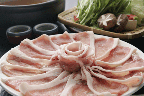 「黒薩摩」の「六白黒豚コラーゲンしゃぶしゃぶ」。かつおダシに泳がせる。