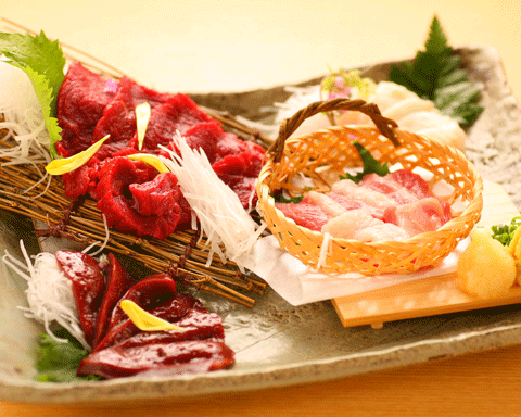 「黒薩摩」の「馬刺しおまかせ盛り」