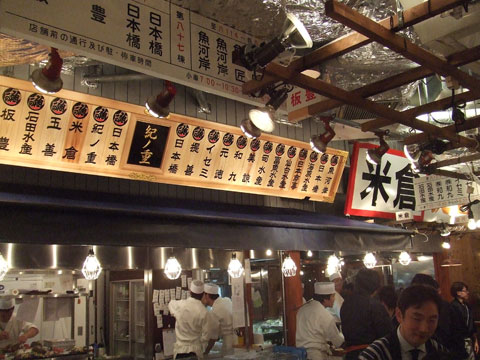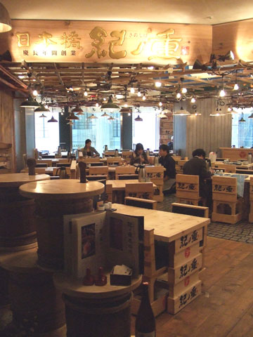 地下1階から地上4階までの商業ゾーンに全25テナントが入居。内、外食は18店。日本橋らしい重厚な老舗感のある内外装の店舗ばかりの中で、魚市場を再現した「日本橋紀ノ重」は異彩を放っている。トロ箱系鮮魚居酒屋や横丁を得意とする浜倉好宣氏がプロデュースし、浜倉色が前面に出ている。100坪で130席の大型店。